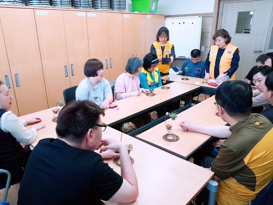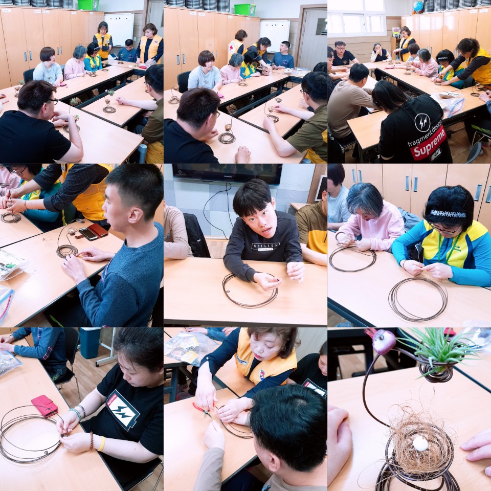 2018.04.19 원예교실 페이지 정보 작성자 이예림 작성일18-04-19 10:22 조회2,221회 댓글0건 관련링크 본문 황사와 미세먼지로 가득한 날씨로 인해 미세먼지를 먹는 다육식물 입게 장식할 철사로 엮은 오브제를 만들었습니다. 인테리어에도 좋고 미세먼지도 잡고 일석이조 입니다. 들꽃적십자 봉사자 및 선생님 방문을 감사드리며 수고하셨습니다. 감사합니다. 댓글목록 등록된 댓글이 없습니다. 이전글 다음글 목록