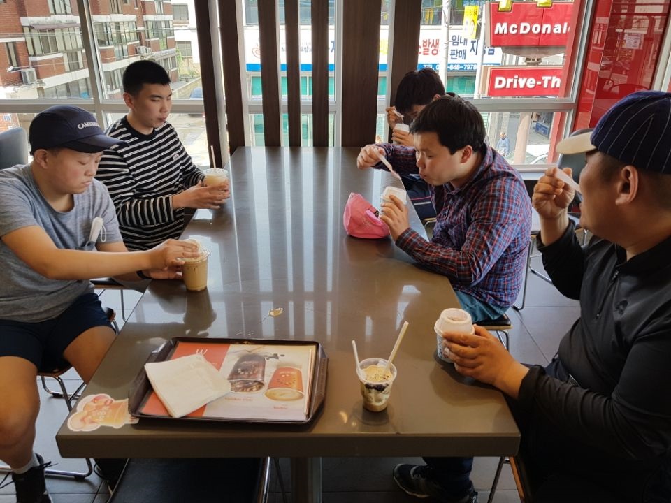 등산활동을 마치고 시원한 아이스크림과 주스를 마시며 휴식시간을 가졌습니다.
