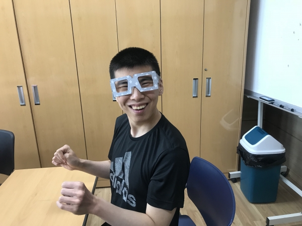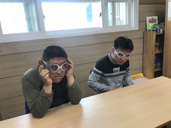 오전에는 웃음치료로 햇빛이 강한 요즘 눈을 보호하기 위해 선글라스를 만들어 보았습니다.
