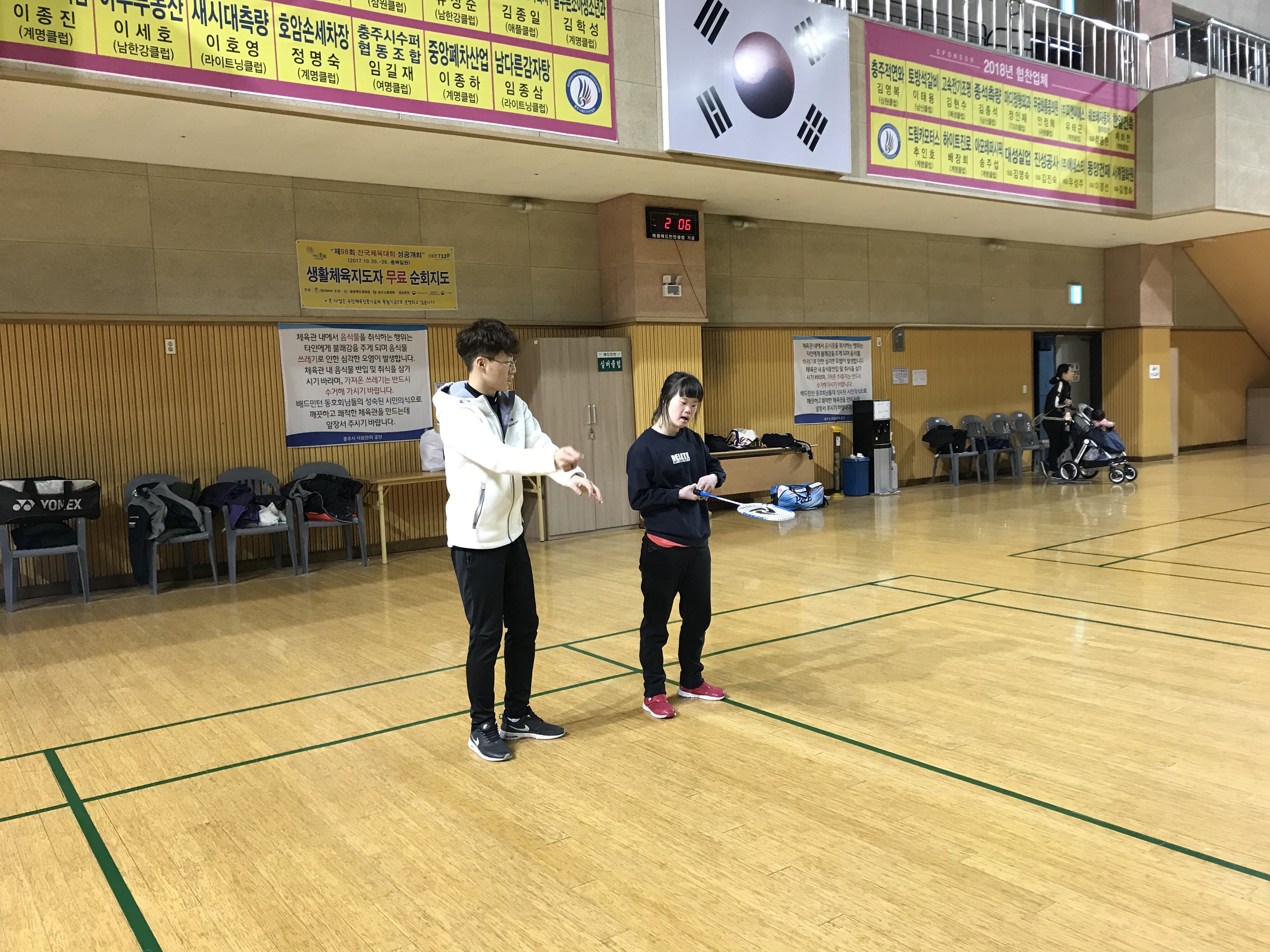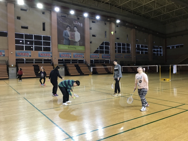 2018.03.23(금) 충주시장애인생활체육회의 지원을 받아 배드민턴 교실을 실시하였습니다. 첫 수업은 오리엔테이션으로 진행되었고 호암2체육관 배드민턴장에서 강사님과 이용인분들이 서로를 알아가고 배드민턴 용구의 이름을 배우며 "배드민턴이 무엇인가"에 대한 기초적인 것들을 배웠습니다.