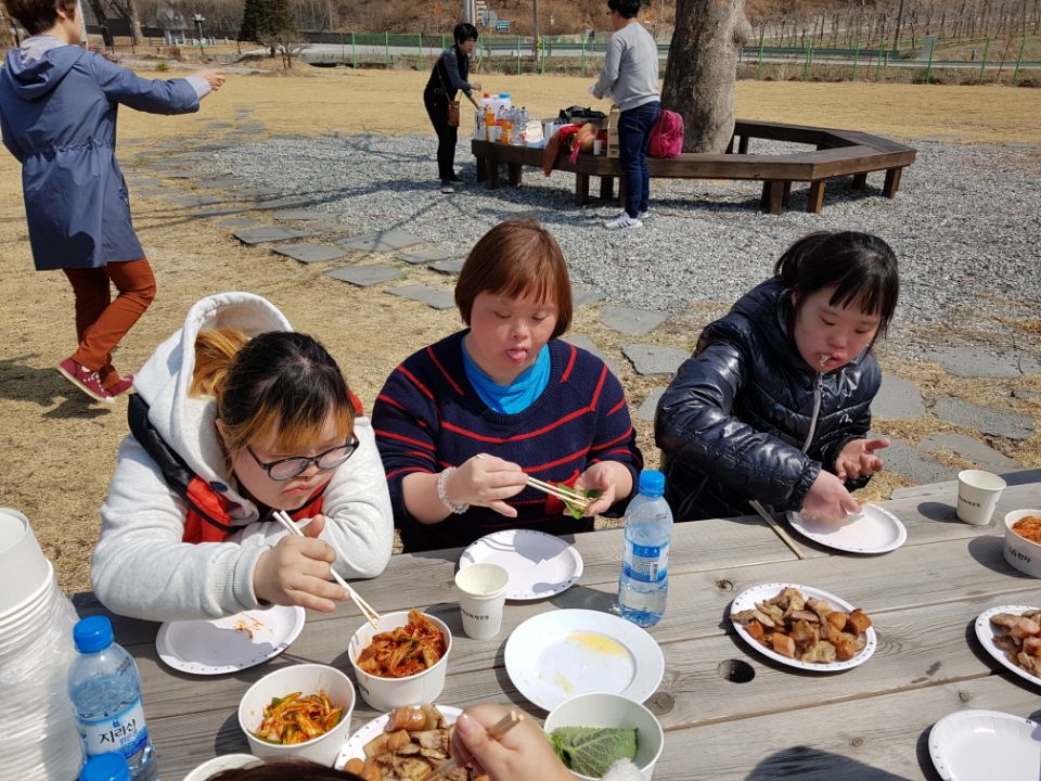 충주시장애인다사랑센터에서는 이용인들이 정서적 안정과 생기 넘치는 일상생활을 영위할 수 있도록 지원하고자 여가활동의 장을 마련하였습니다. 다사랑후원회 회원분들과 다사랑센터 이용인과 만남의 자리를 통해 서로를 이해하고 존중하는 소통의 시간을 보냈습니다. 그리고 다사랑후원회에서는 이용인분들께 고기, 피자, 오렌지, 떡 등으로 맛있고 푸짐한 점심식사를 제공해주셨습니다