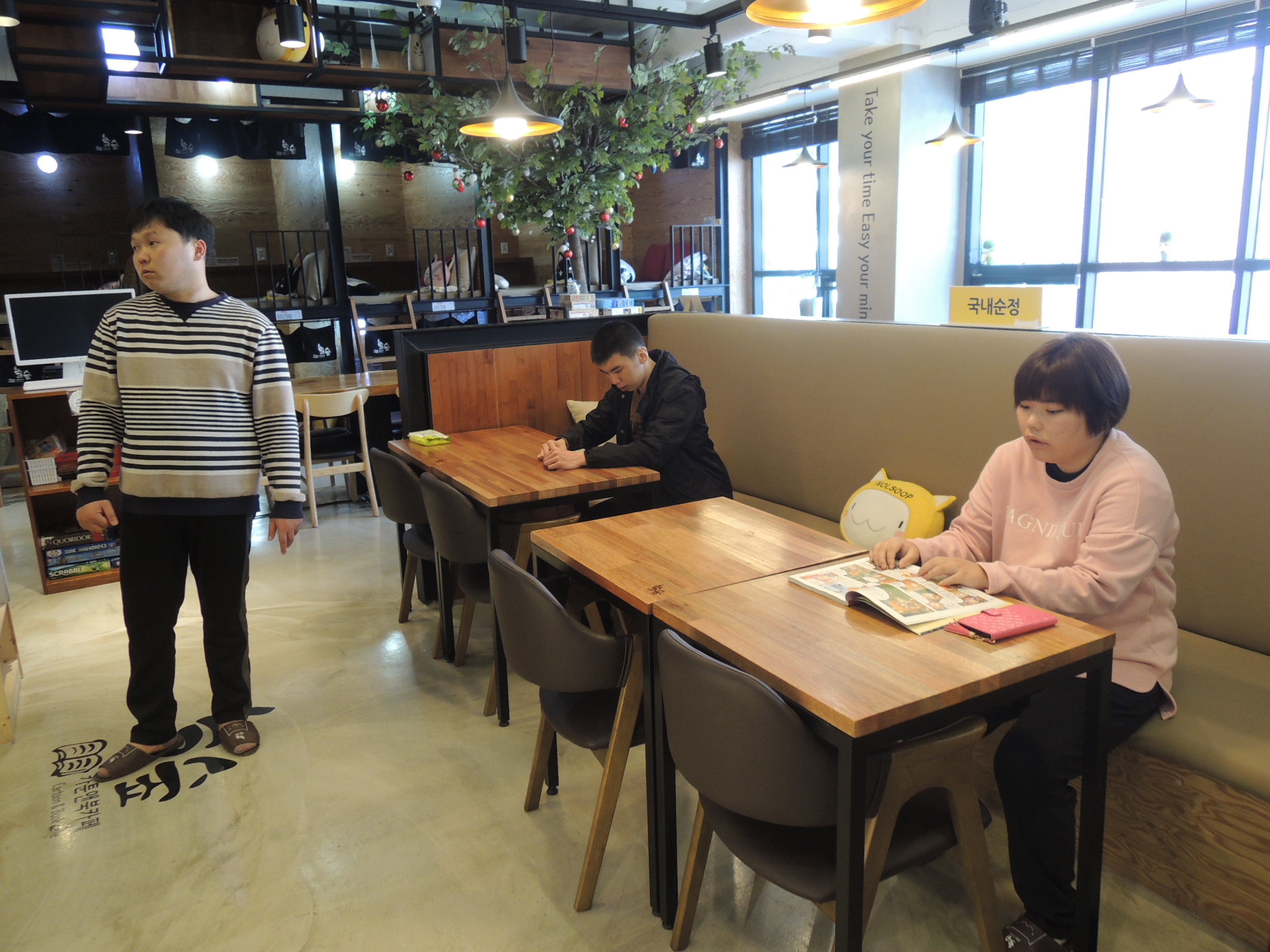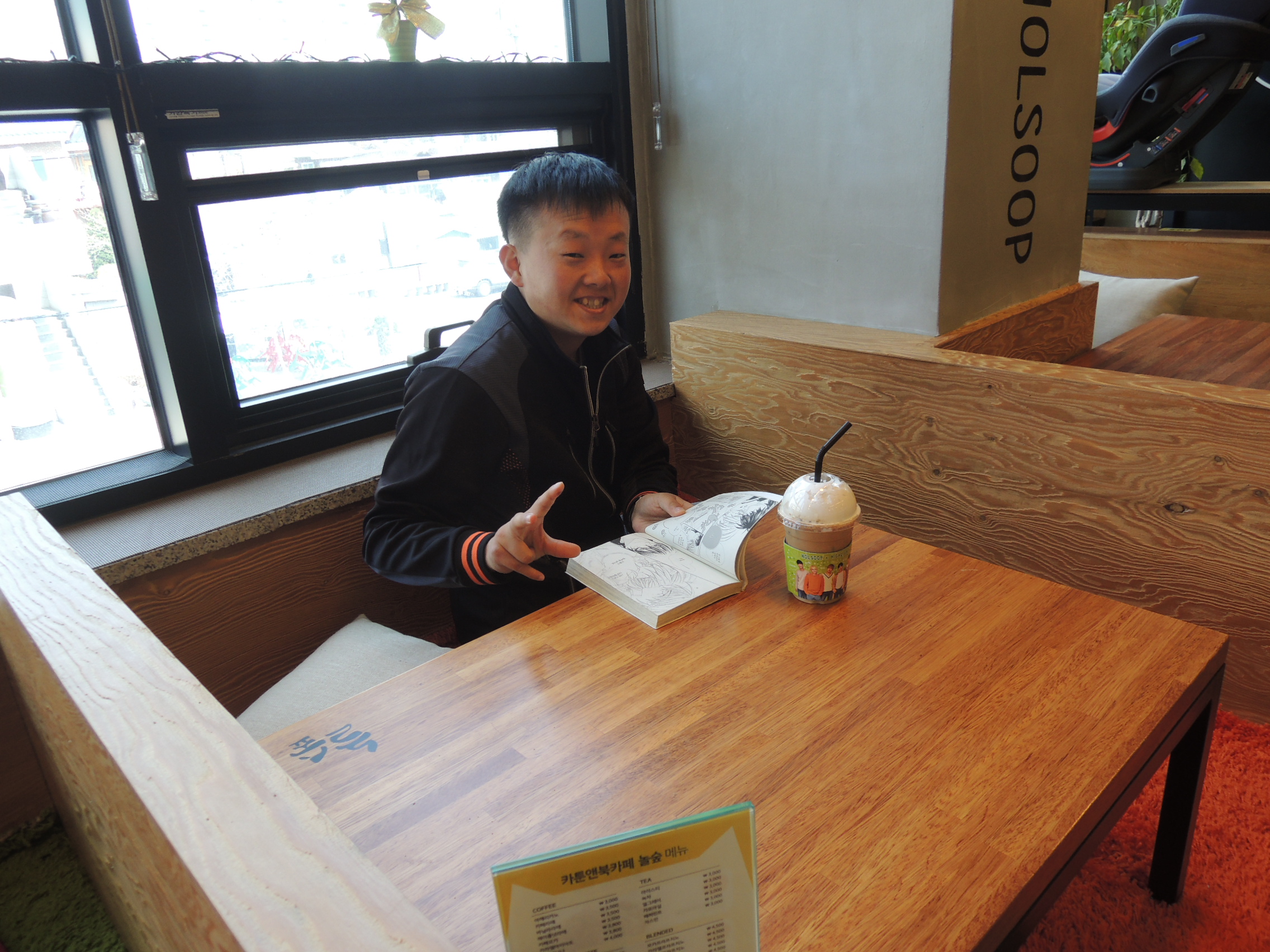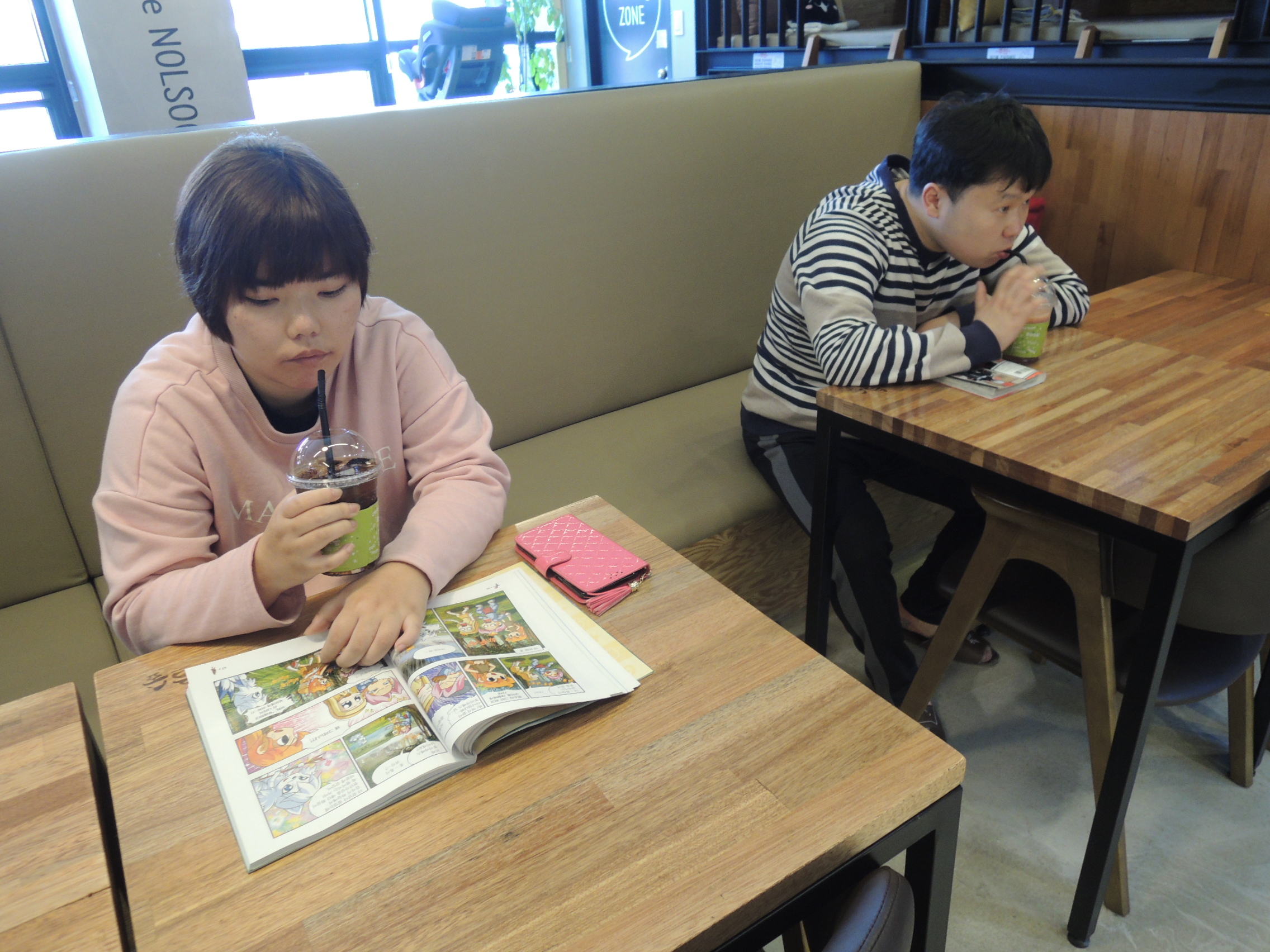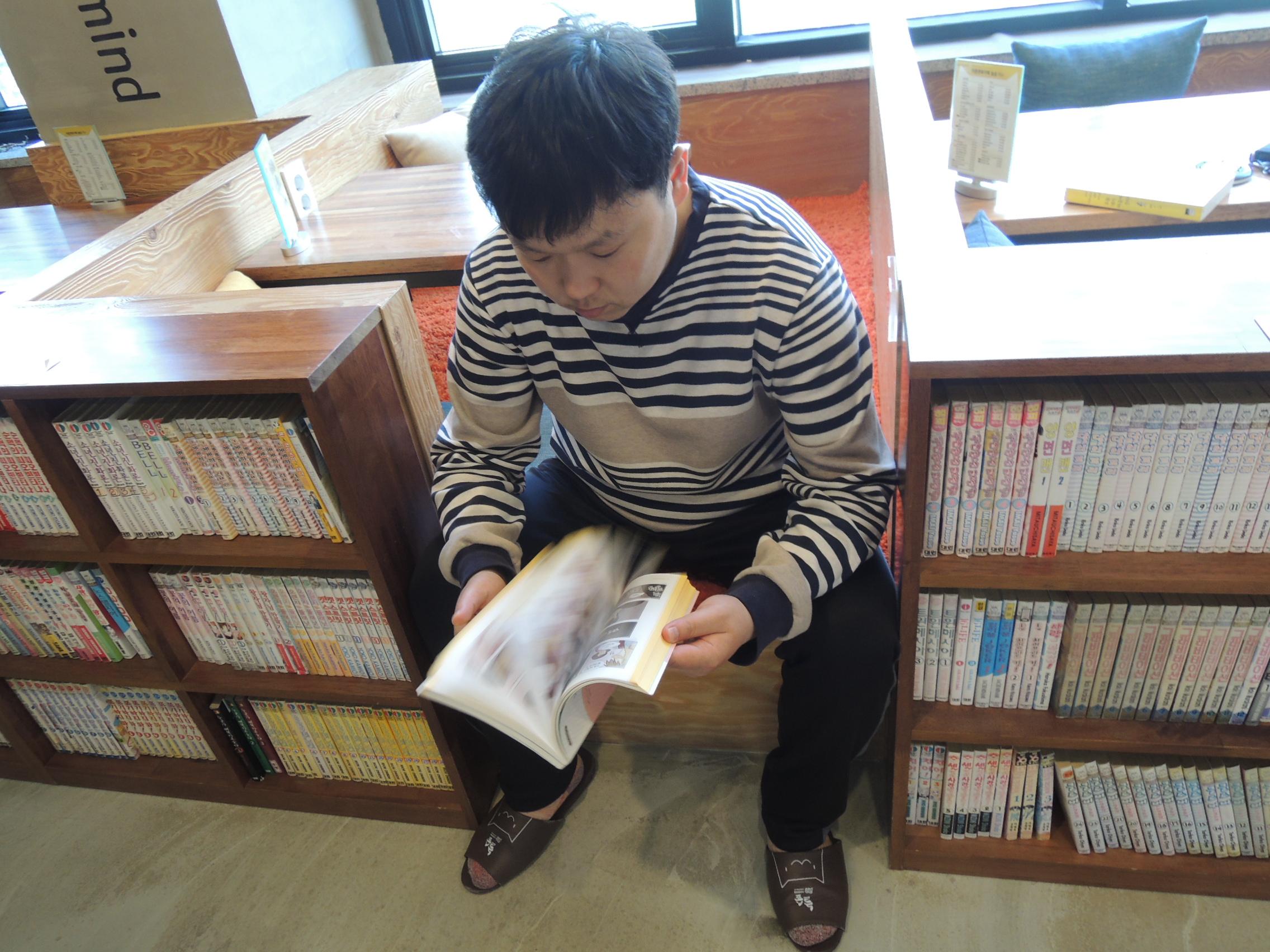 여기는 쉽게 읽을 수 있는 만화책도 많고 음료도 마실 수 있어서