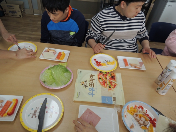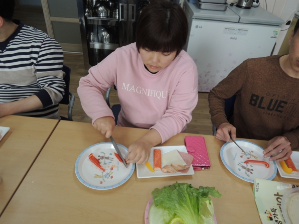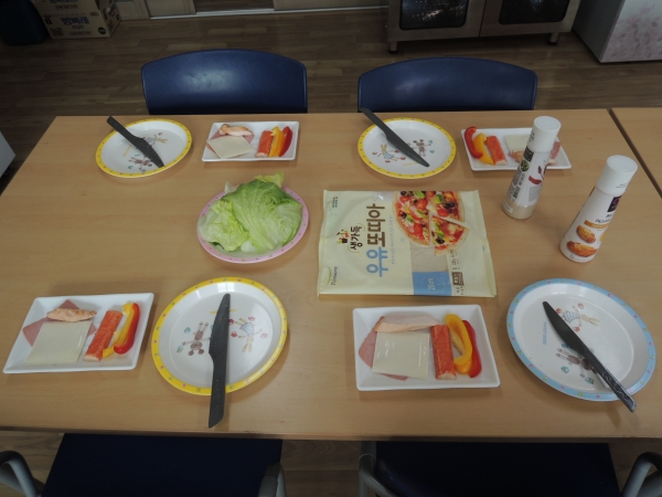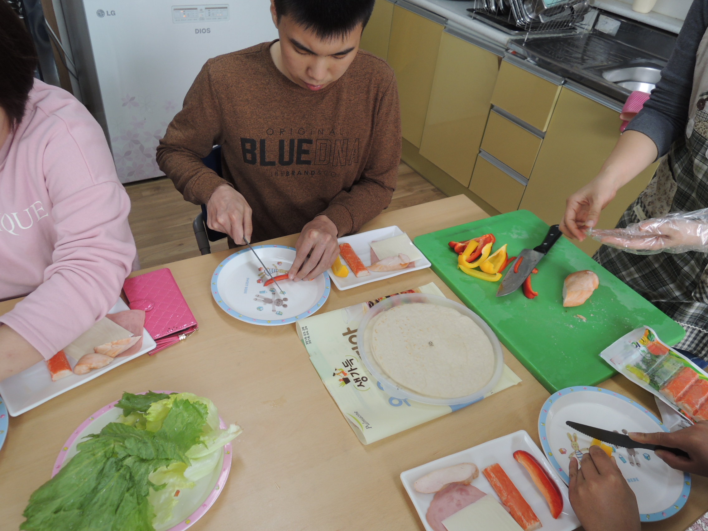 오늘 저희는 간식으로 먹을 치킨랩을 만들었습니다.