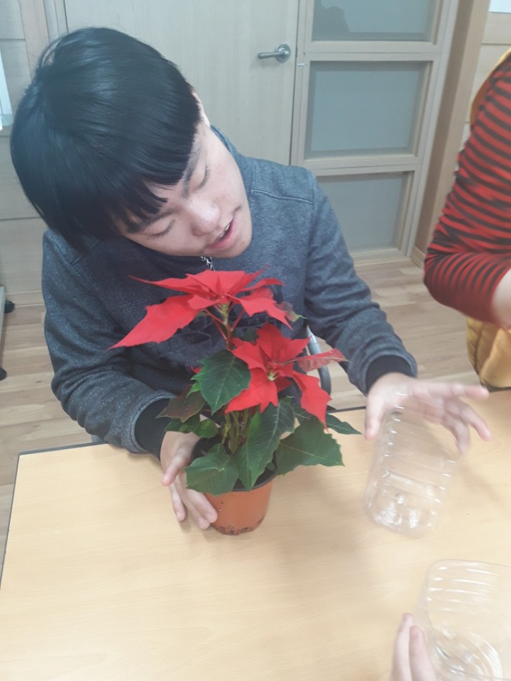 포인세티아를 페트병에 이쁘게 담았습니다.