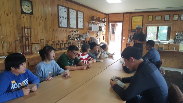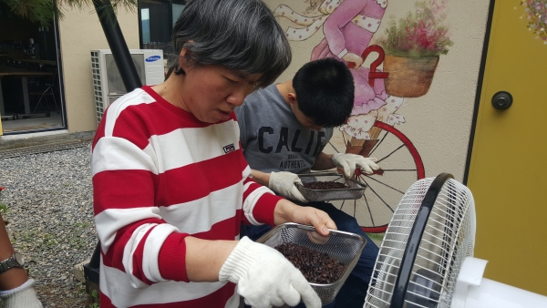 커피를 볶고, 선풍기 앞에서 말리는 작업, 포장작업까지 완벽하게!!