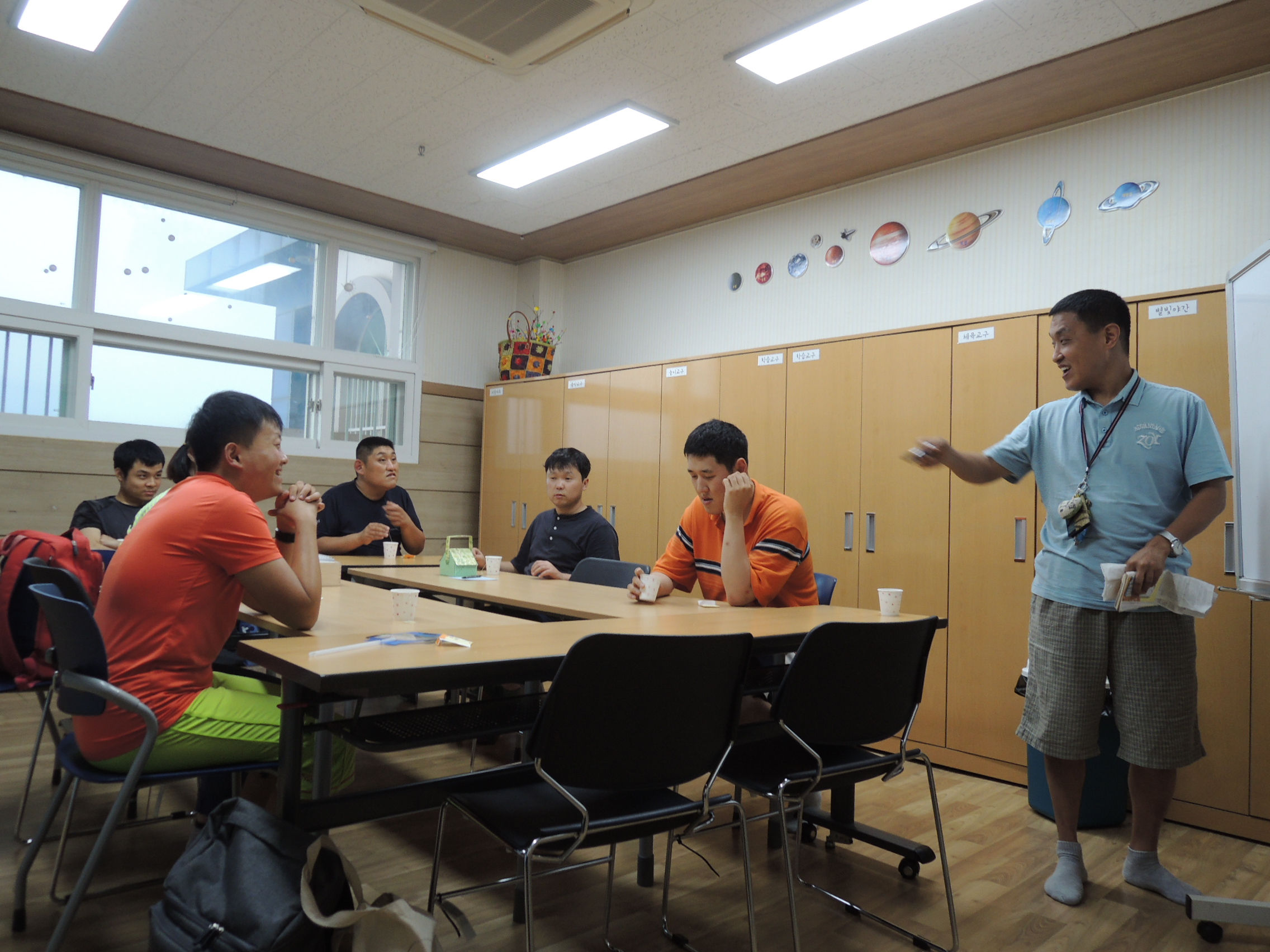 다사랑 이용인 자치회가 진행되었습니다. 평소 센터와 이용인들의 여러 상황들에 대해 많이 고민하고 생각하는 정연태회장님께서 여러 가지 안건을 꼼꼼히 메모해 두었다가 자치회가 시작되자 판서를 합니다. 평소 퇴근이 늦어 식사를 따로 하는 엄익준회원님도 오늘은 서둘러 식사를 마치고 관심어린 눈빛으로 회의에 참여했습니다. 오늘은 지난 회차보다 많은 안건이 나왔지만 결정이 쉽지 않았습니다. 그래도 모두들 자치회를 마칠 때 까지 자리를 지키며 서로의 의견에 귀를 기울이는 모습이었답니다.