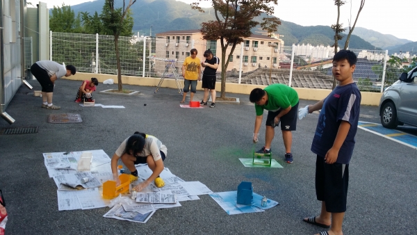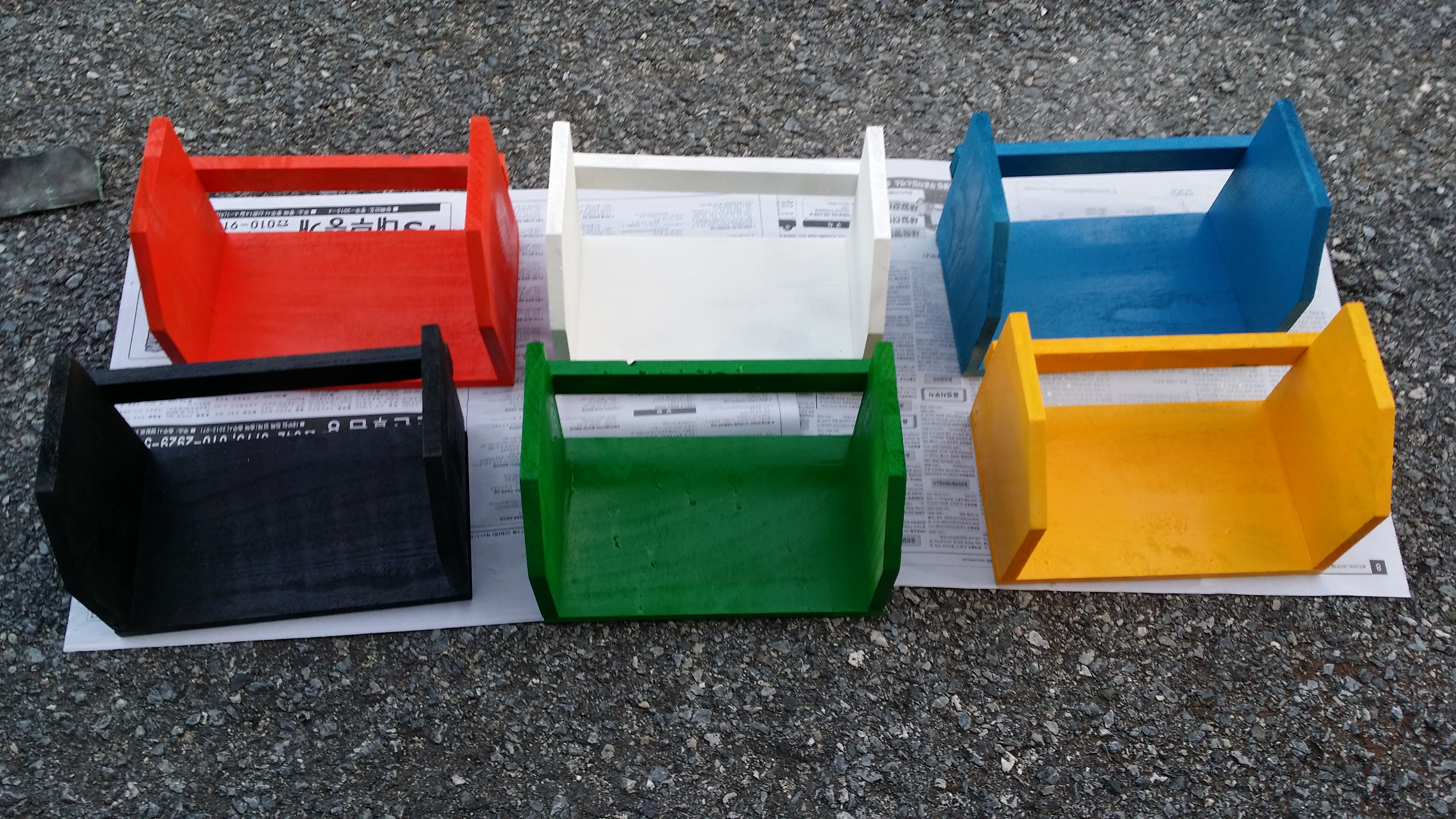 책꽂이 나무판 위에 못을 망치로 박고, 사포질 및 락카페인팅도 하였습니다.
