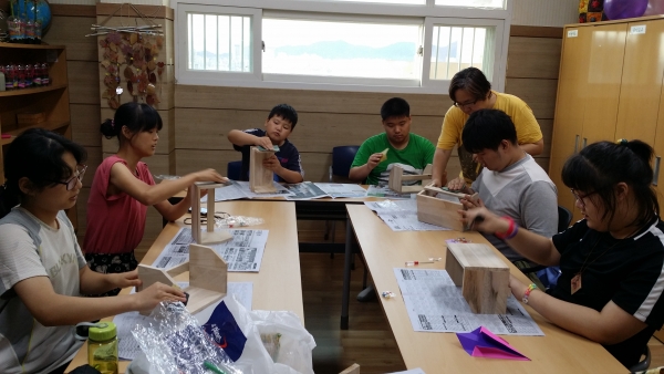 별빛친구들이 각자의 개성을 살려 예쁜 책꽂이를 만들었답니다.