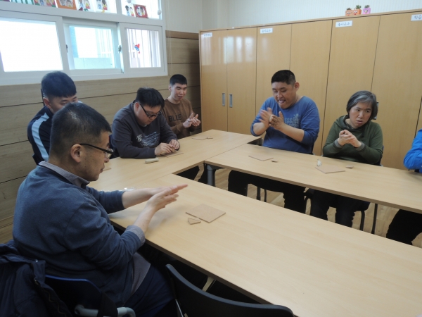 첫수업은 화석액자만들기로, 과학교실을 기다려왔던 이용인분들이 즐겁게 참여하였습니다.