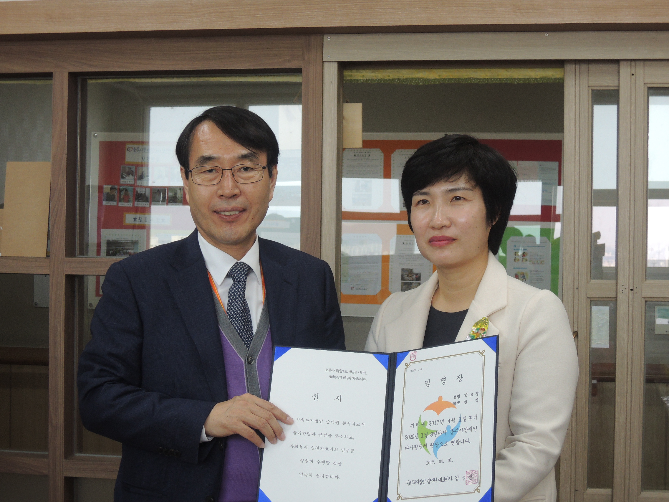 법인 숭덕원의 대표님과 대표이사님께서 방문하시어 임명장 전달과 함께, 축하의 인사를 전해주셨습니다.