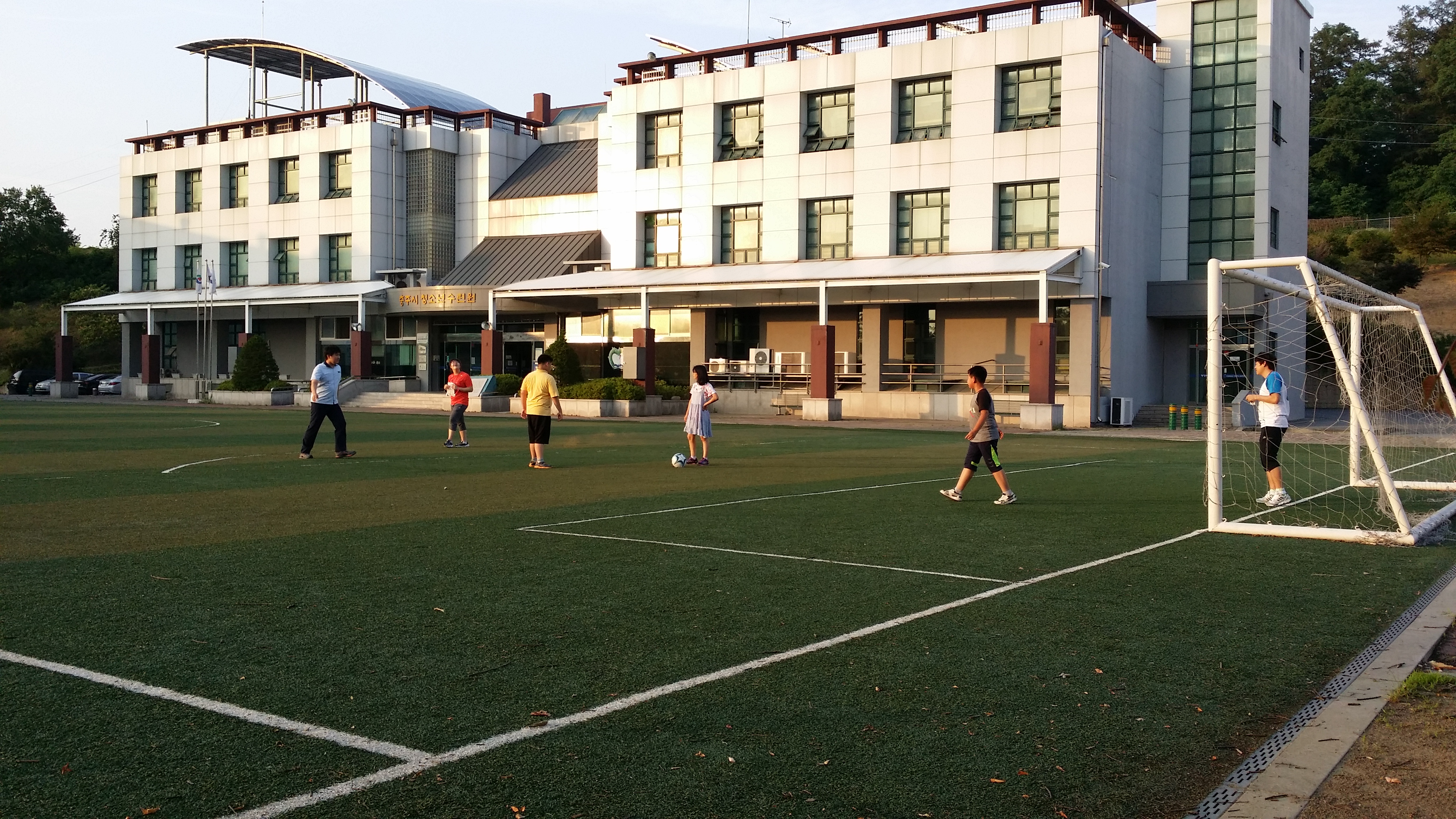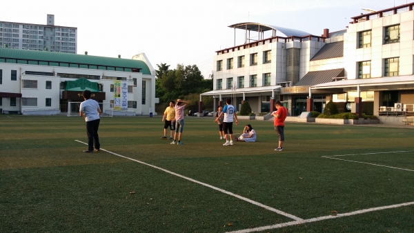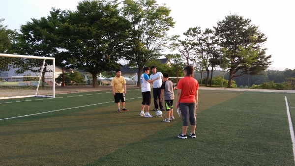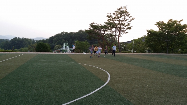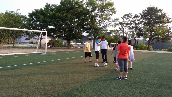 태권도시간에 호암지 산책및 청소년수련원 잔디구장에서 축구를 경기를 했습니다.