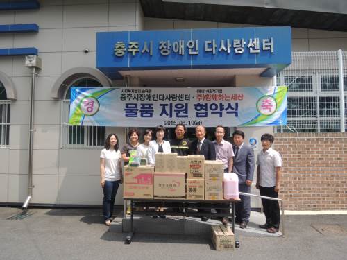 충주시장애인다사랑센터-(주)함께하는 세상 물품 지원 협약식 페이지 정보 작성자 심언석 작성일15-06-18 08:54 조회1,844회 댓글0건 관련링크 본문 오늘 충주시장애인다사랑센터와 예비사회적기업인 (주)함께하는 세상 사이에 물품 지원 협약식과 함께 생필품 후원이 있었습니다. 충주시장애인다사랑센터에 이렇게 큰 선물을 안겨주신 (주)함께하는 세상의 모든 분들께 감사드리며, 앞으로도 지속적인 사랑과 관심 부탁드립니다. 감사합니다! 댓글목록 등록된 댓글이 없습니다. 이전글 다음글 목록