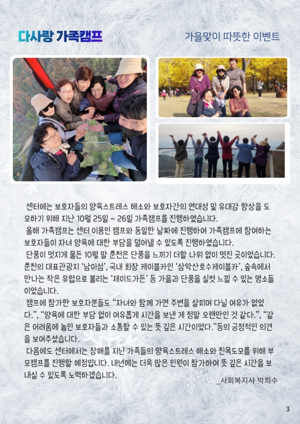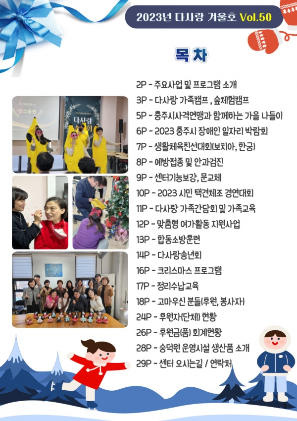 23년 겨울호 (vol.50) 다사랑 뉴스레터 페이지 정보 작성자 이재호 작성일24-01-09 04:08 조회750회 댓글0건 관련링크 본문 댓글목록 등록된 댓글이 없습니다. 이전글 다음글 목록