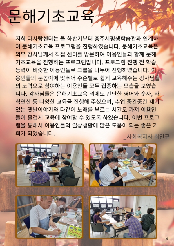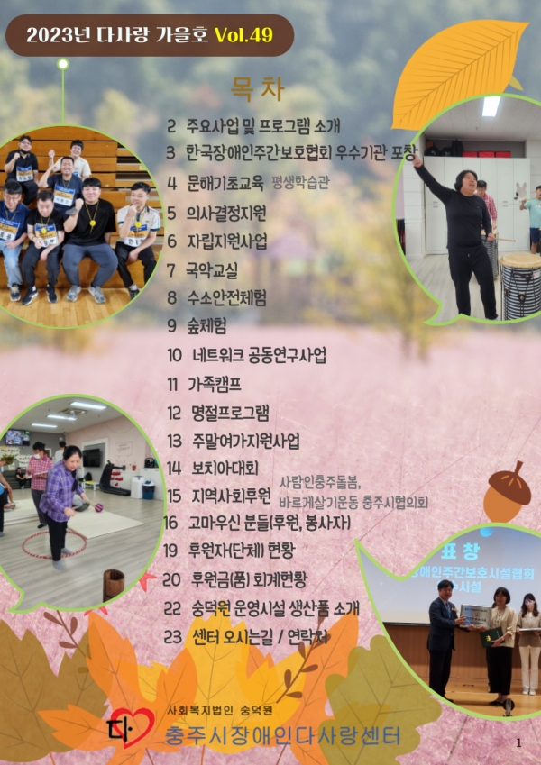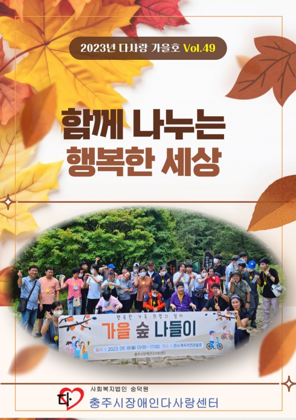 23년 가을호 (vol.49) 다사랑 뉴스레터 페이지 정보 작성자 이재호 작성일23-10-05 18:32 조회784회 댓글0건 관련링크 본문 댓글목록 등록된 댓글이 없습니다. 이전글 다음글 목록