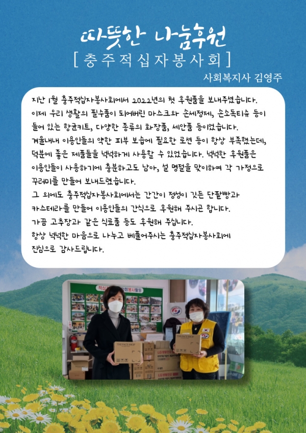22년 4월호 (vol.43) 다사랑 뉴스레터 페이지 정보 작성자 최인규 작성일22-04-20 17:23 조회834회 댓글0건 관련링크 본문 댓글목록 등록된 댓글이 없습니다. 이전글 다음글 목록