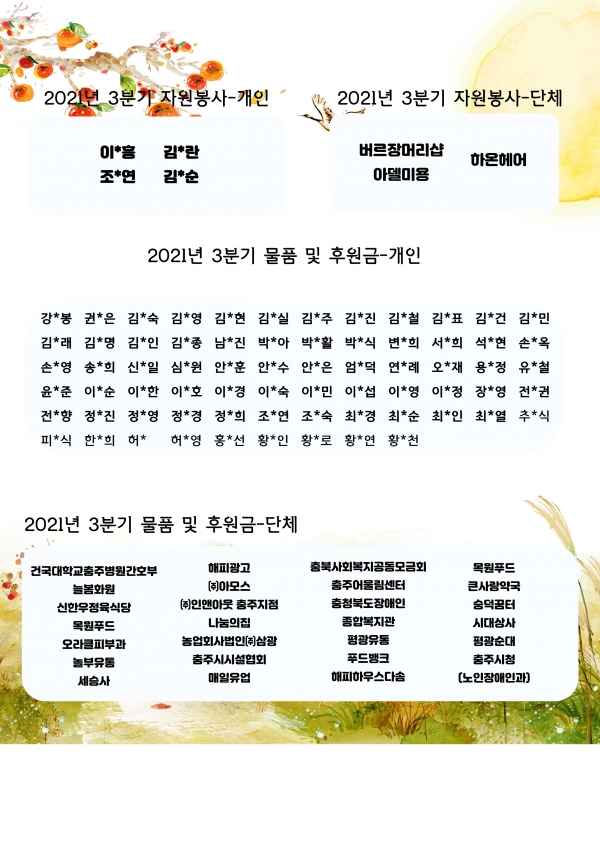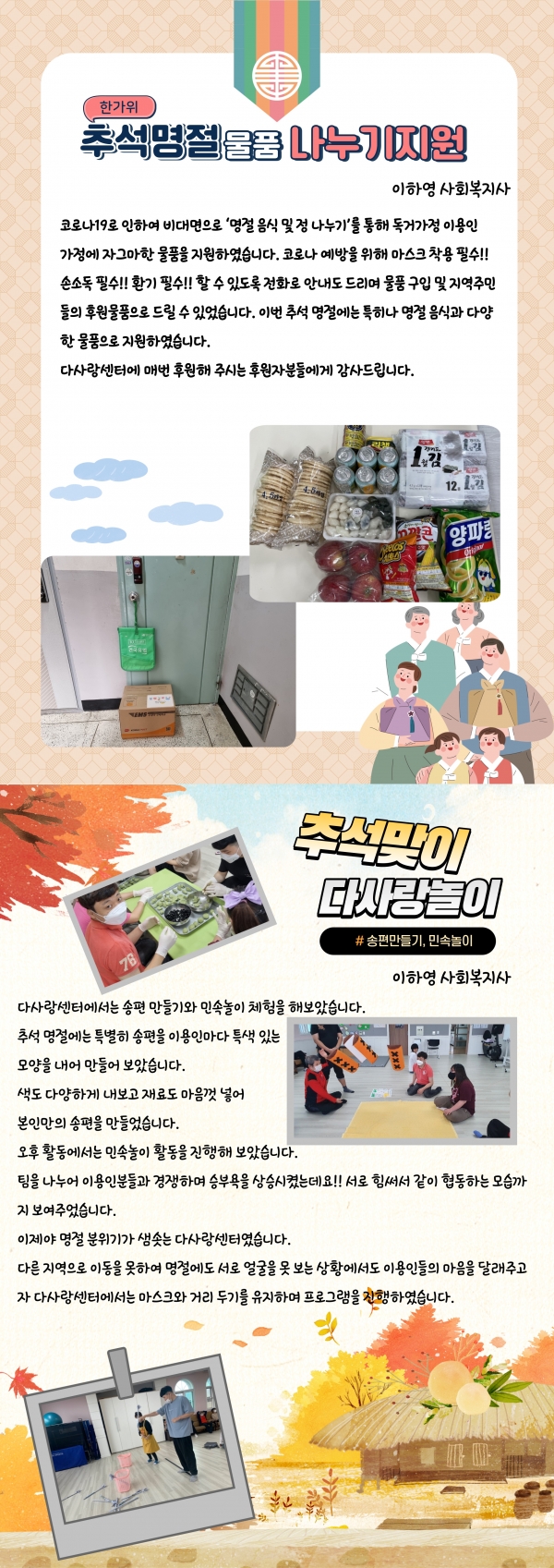21년 10월호 (vol.41) 다사랑 뉴스레터 페이지 정보 작성자 최인규 작성일21-10-08 15:27 조회1,152회 댓글0건 관련링크 본문 댓글목록 등록된 댓글이 없습니다. 이전글 다음글 목록