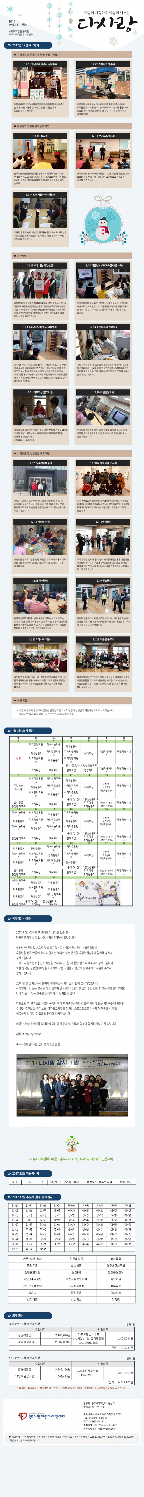 2017년 12월호 (vol.11) 다사랑 뉴스레터