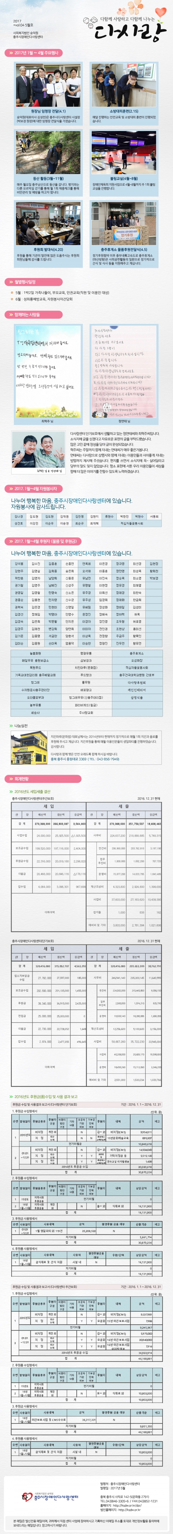 17년 5월호 (vol.4) 다사랑 뉴스레터 페이지 정보 작성자 김영실 작성일17-06-07 08:46 조회1,265회 댓글0건 관련링크 본문 * 책자로 발행되어 우편발송되었던 소식지가 2017년 5월부터 이메일로 발송되는 뉴스레터로 변경되었습니다. 댓글목록 등록된 댓글이 없습니다. 이전글 다음글 목록