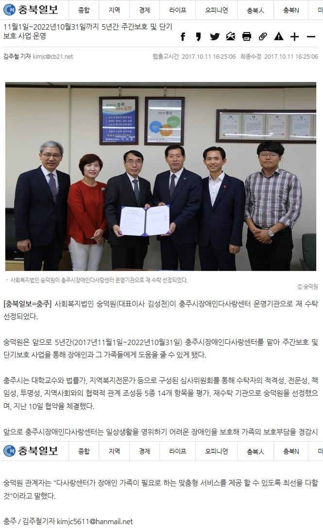 충주시 & 숭덕원 : 충주시장애인다사랑센터 위탁 협약 체결 페이지 정보 작성자 박보경 작성일17-10-12 03:05 조회1,197회 댓글0건 관련링크 본문 댓글목록 등록된 댓글이 없습니다. 이전글 다음글 목록